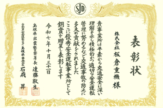 11月11日(火)、弊社は『優秀安全運転事業所表彰』において
